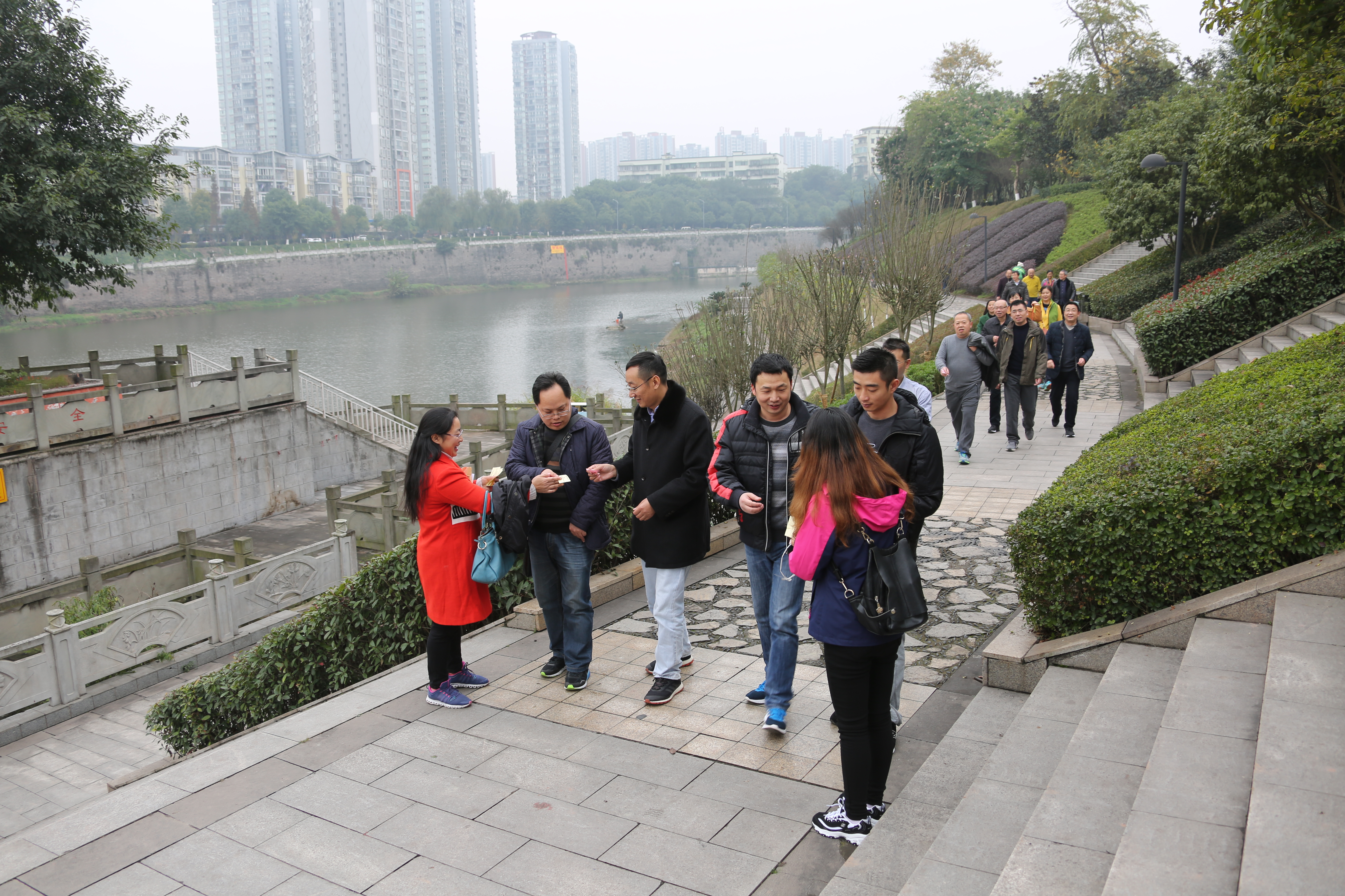 随着党工委副书记、纪工委书记魏培修同志的一声“出发”令下,老师们迈开矫健的步伐从怀乡广场出发,沿着濑溪河畔行进,大家沐浴着冬日阳光,一路上谈笑风生,或聊工作,或谈生活,十分惬意。绝大多数老师圆满完成了从怀乡广场至廊桥段的健步行走,往返路程约10公里。