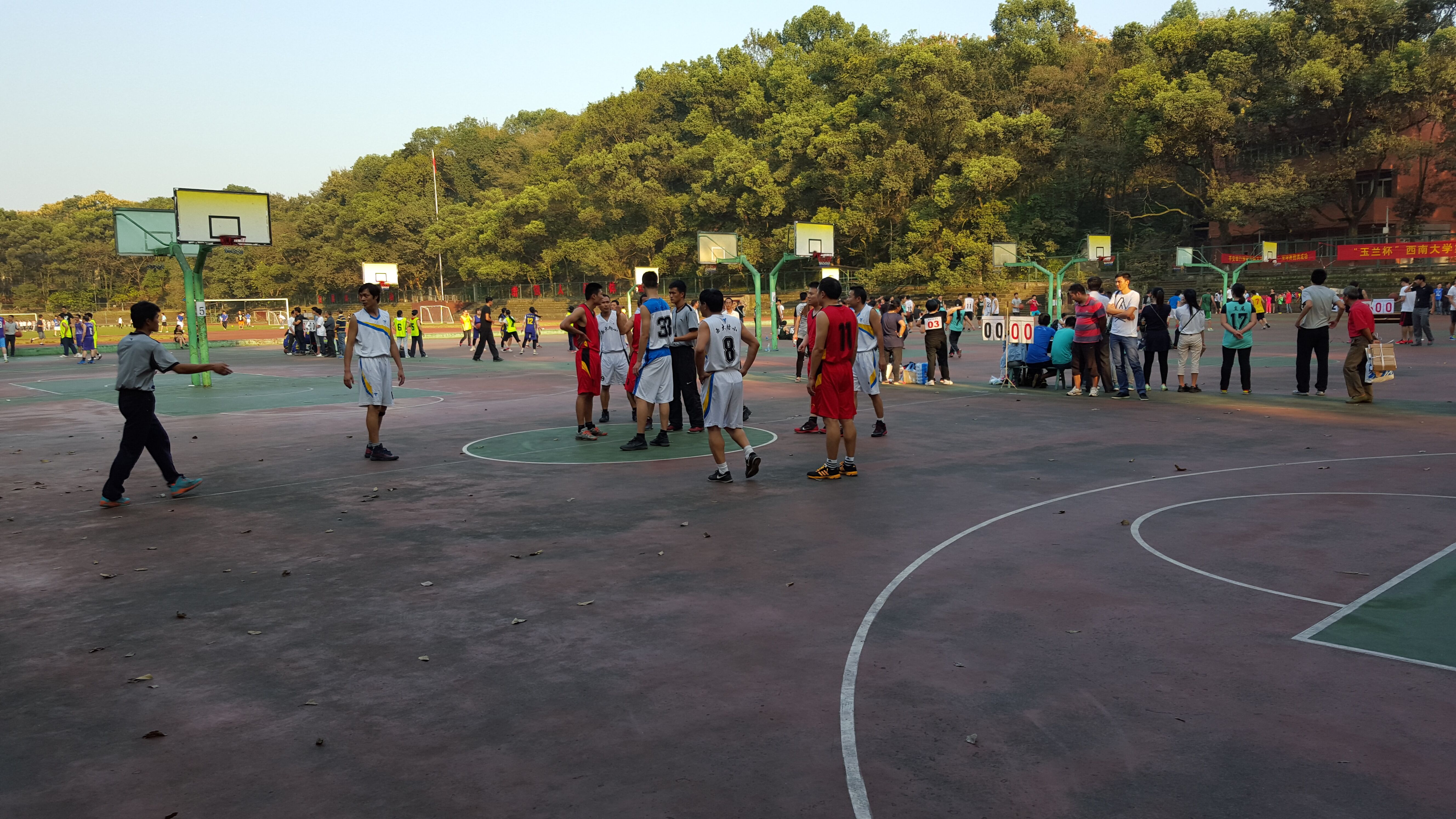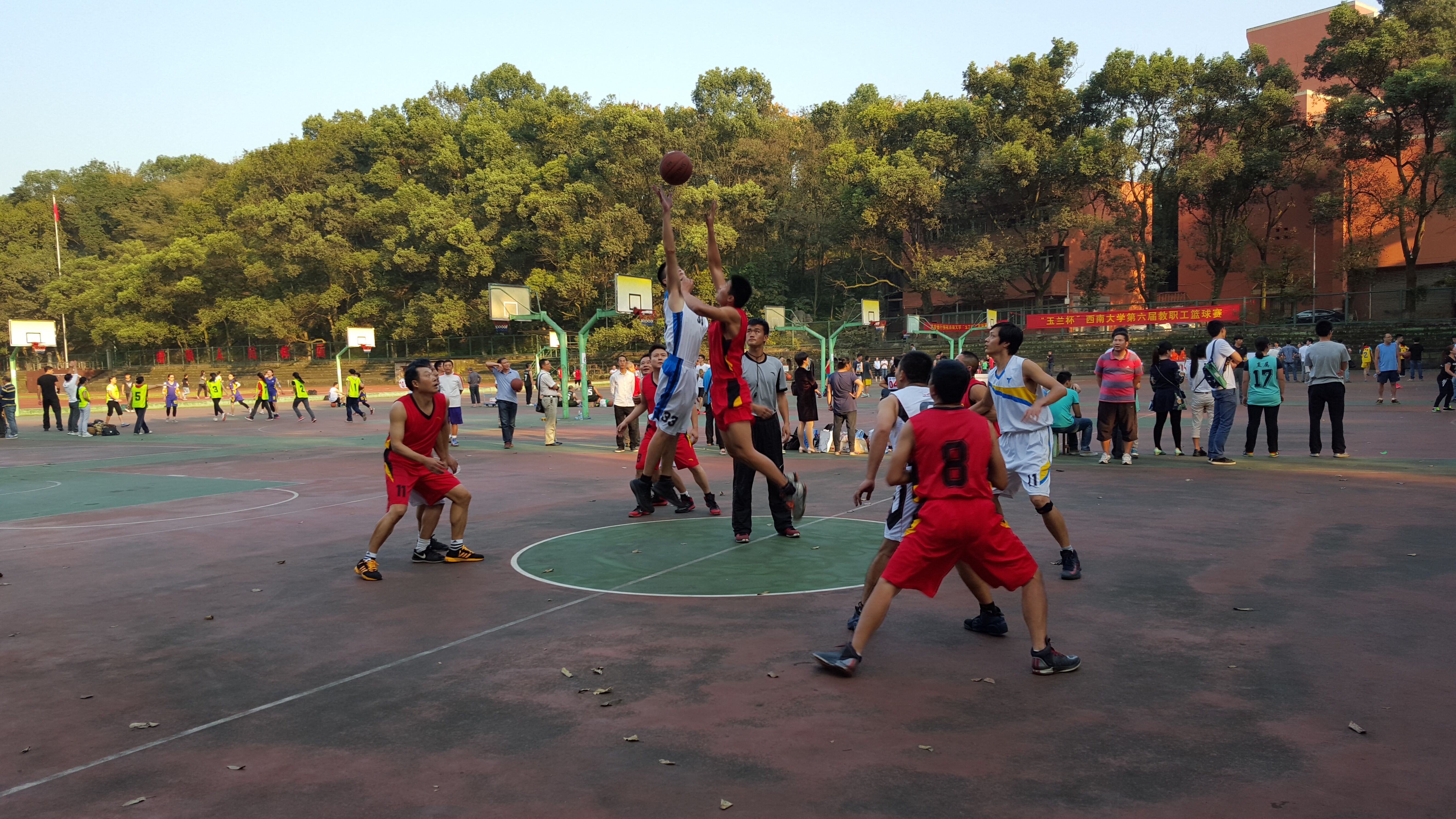 10月21日下午,我校男子篮球队将迎来小组赛中最强劲的对手——体育学院,在开赛之前,球场两边便围满了观众,一时间这场比赛便成了整个篮球场的焦点,这种紧张热烈的气氛似乎也向我们预示,这注定将是一场强者之间对抗激烈、扣人心弦的比赛。