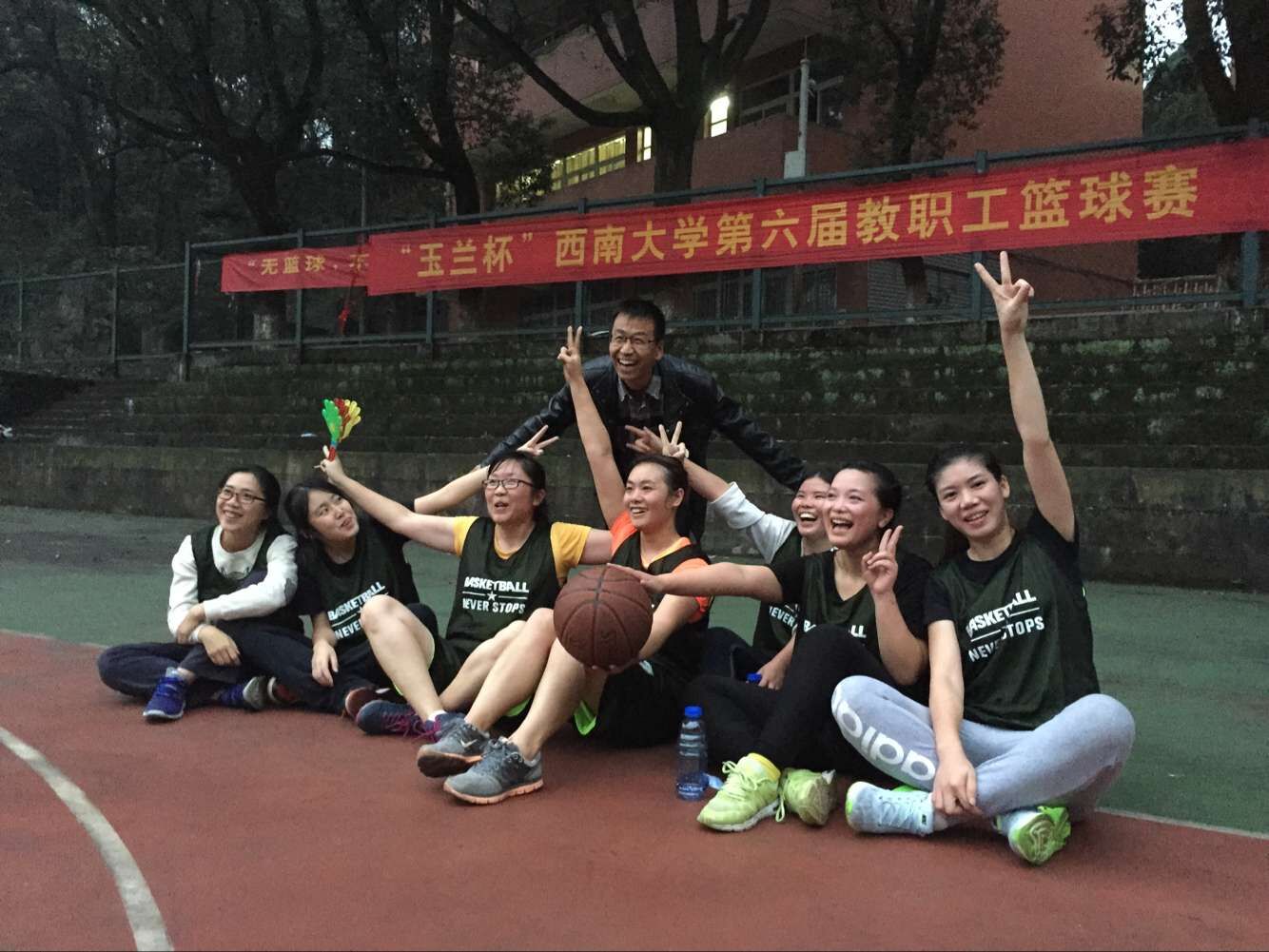 11月18日下午,教职工篮球赛决赛在第一运动场开赛,后勤集团女子篮球队经过一路闯关,与强队农生队相逢决赛场。