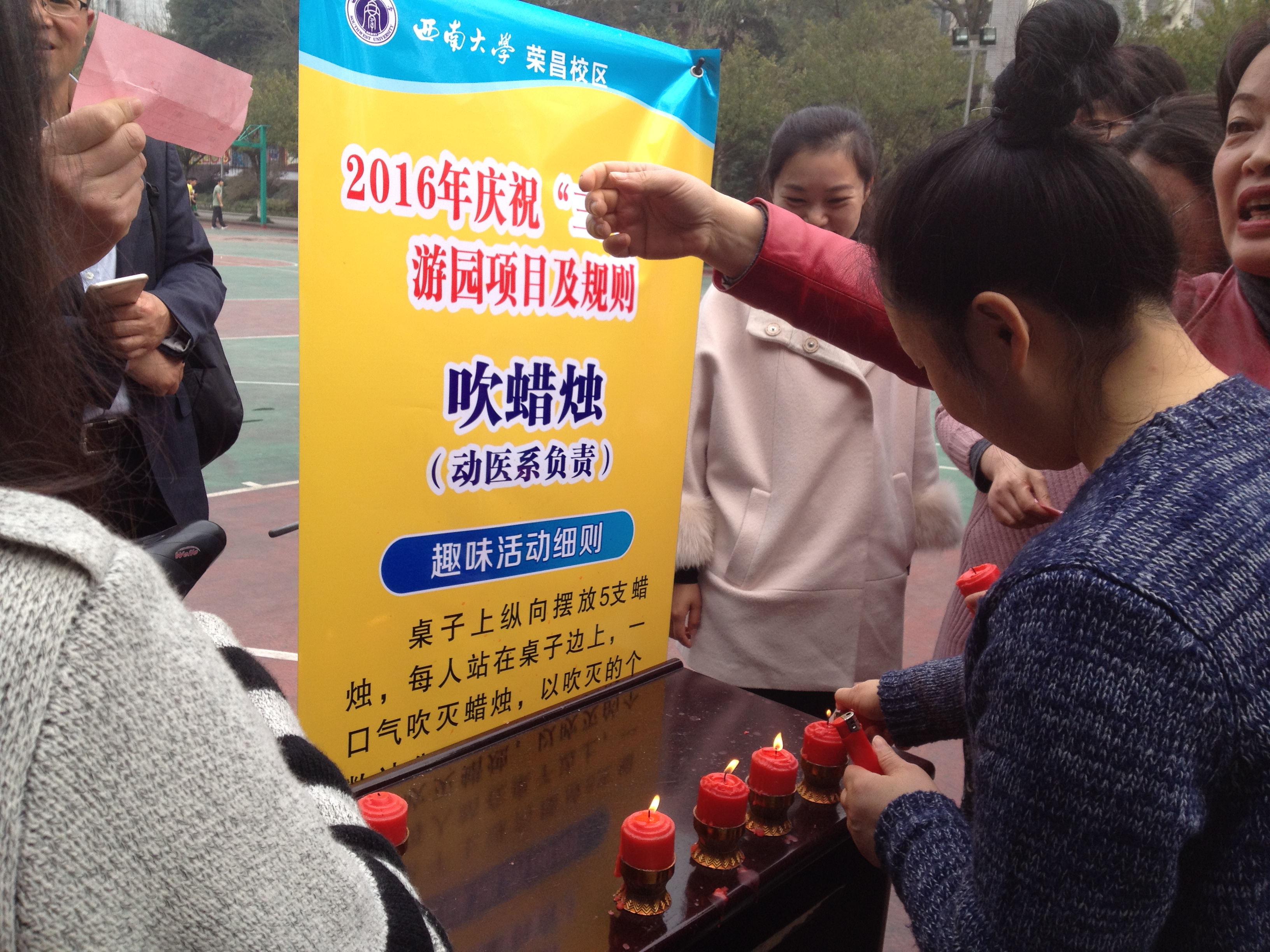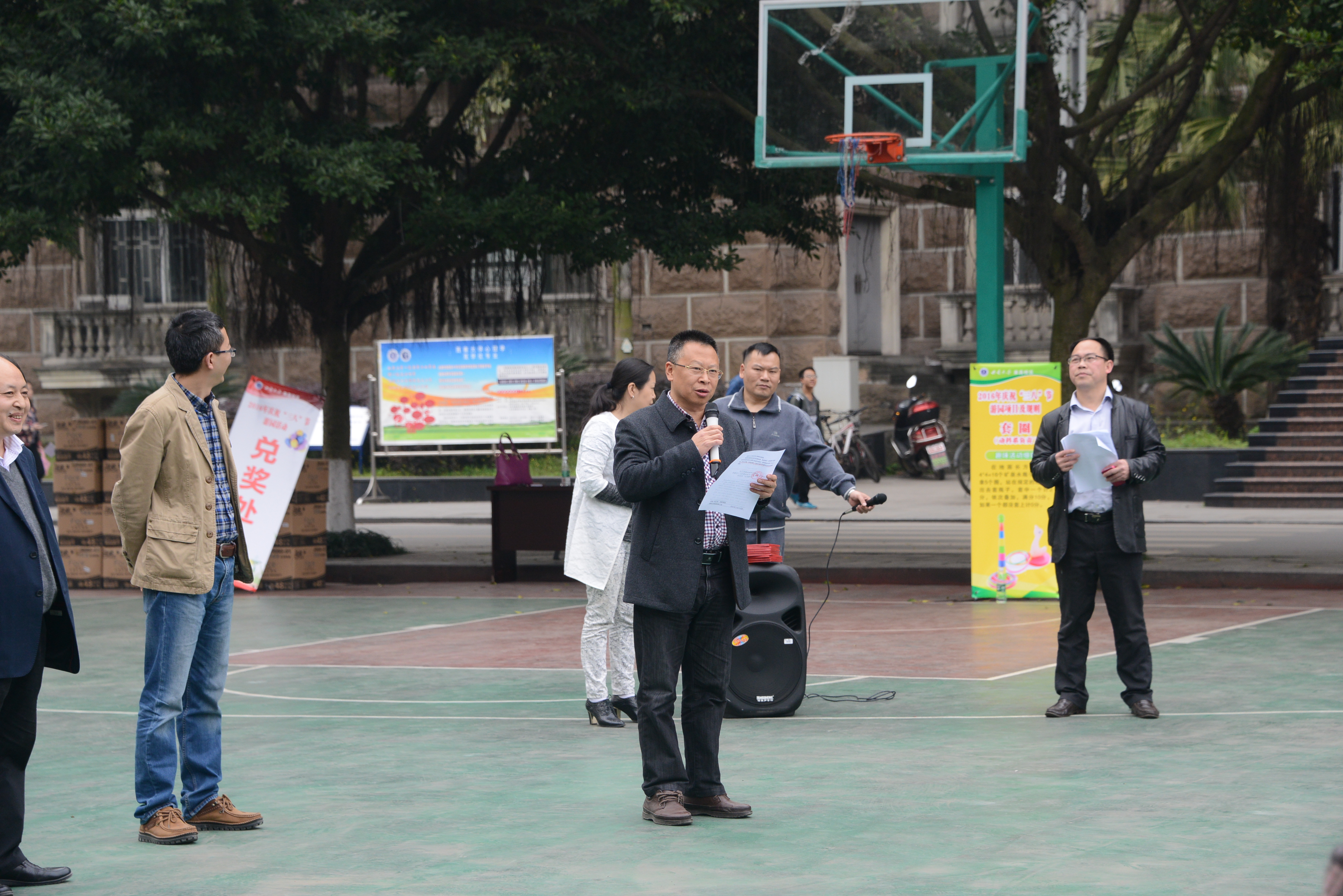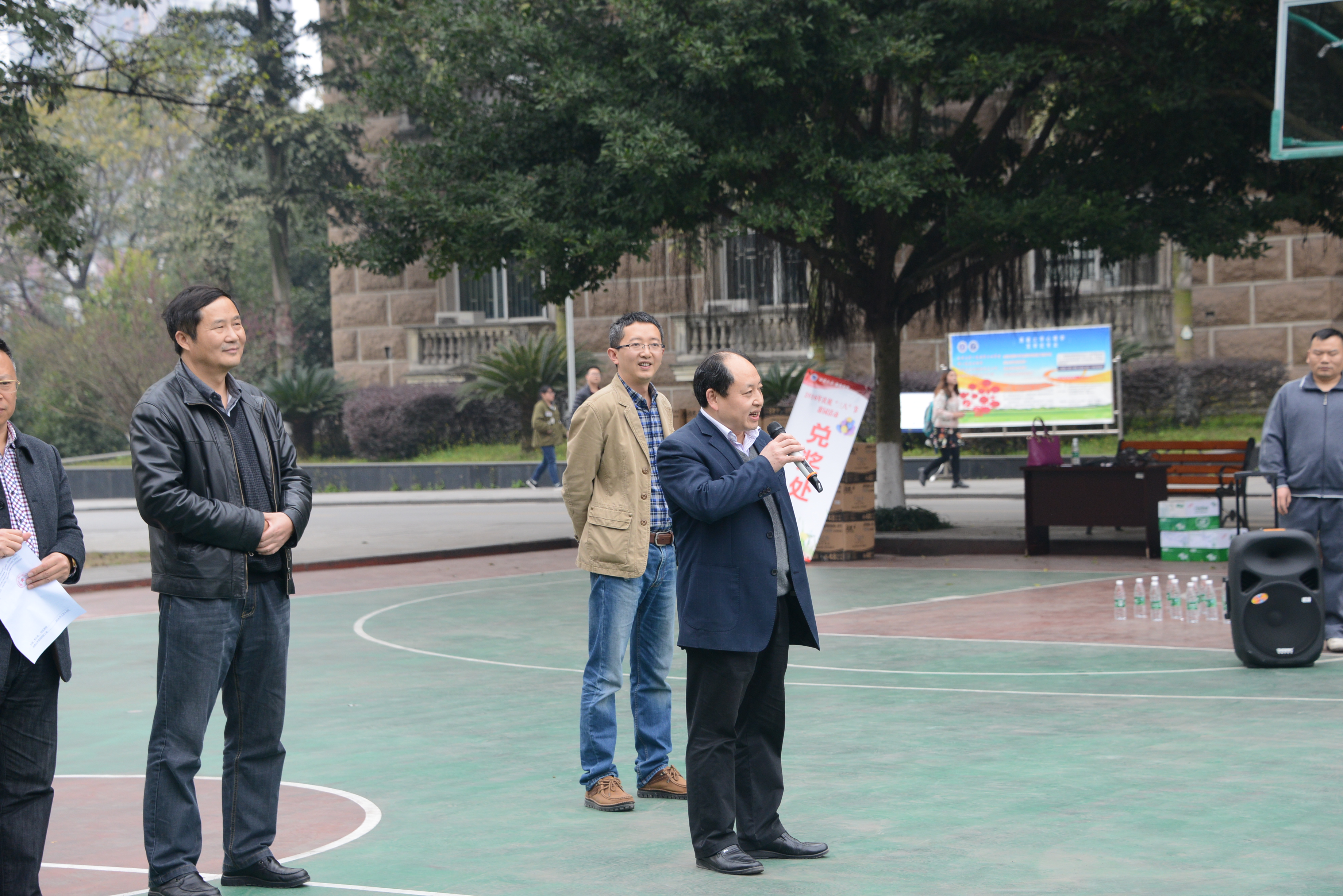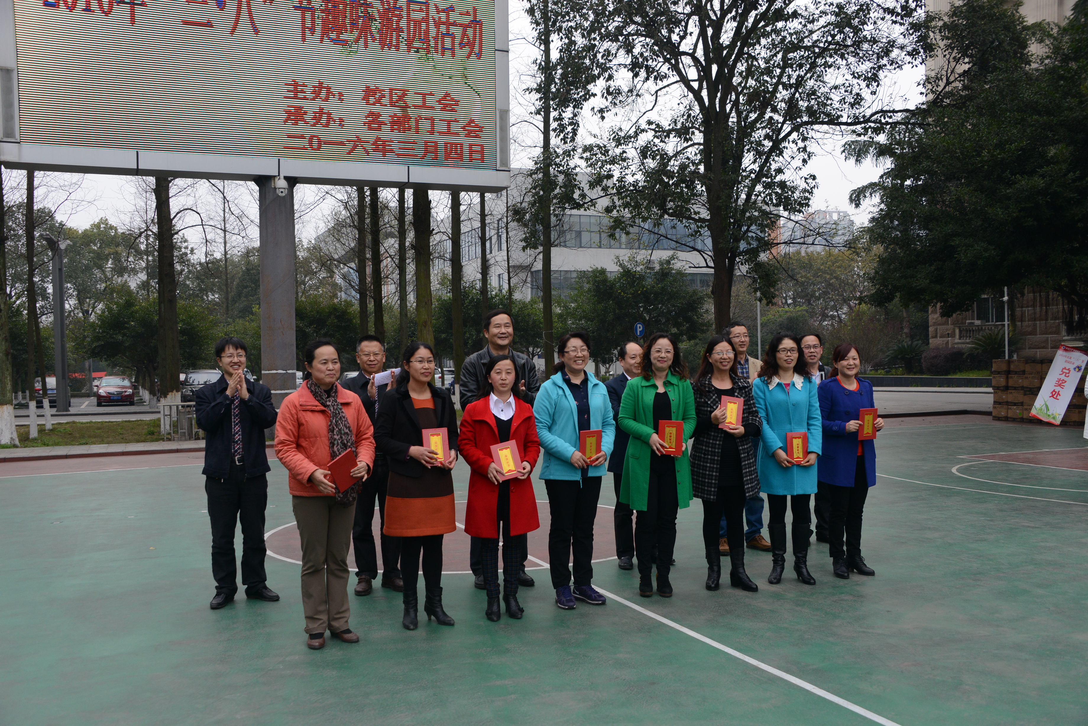 2016年3月4日下午,阳光明媚,春暖花开。校区工会在校区二教楼门前为全体女职工开展庆祝“三八节”趣味活动。参加活动有校区在职全体女职工,并邀请各级党政领导参加。校区管委会主任左福元,党工委副书记、纪工委书记周国安,管委会副主任朱汉春、赵智华、刘娟,党工委副书记魏培修出席并与女教职工一同参与庆祝活动。