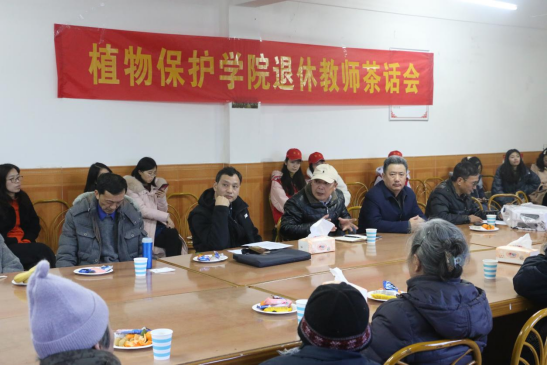 2021年12月21日下午,植物保护学院在黄树村教职工活动中心举行离退休教师新春茶话会。学院党委书记唐荣发、院长刘怀、副书记李玉胜、工会主席孙现超、青年教师、植愿学生党员服务队志愿者及21名离退休教职工参加了茶话会。茶话会由工会主席孙现超主持。