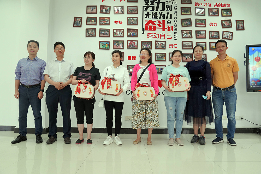 馆领导为本命年的馆员代表送上本命年特别祝福——“大展鸿‘兔’”礼盒,祝愿本命年的馆员们在兔年大展鸿“兔”、好事成“TWO”。并为小组长们发放生日蛋糕卡和“一岁一礼”生日伴手礼。