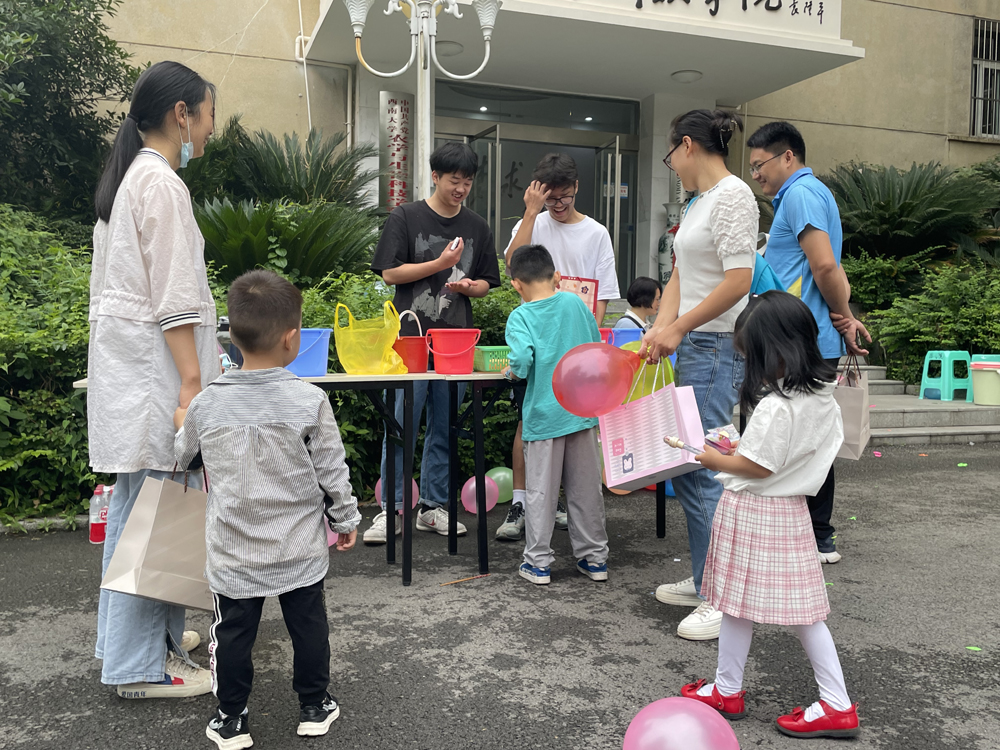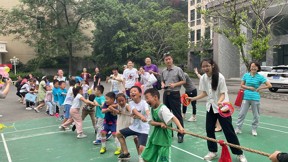 活动中,学院工会准备了垃圾分类小比赛、筷子夹乒乓球、推兵入圈、小圈套礼品活动以及不一样的拔河比赛等。活动中,小朋友的脸上都洋溢着笑容,是领到小礼品的幸福,是父母陪伴的温馨,是小朋友一起玩耍的欢乐。活动中,小朋友学会不一样的知识,有垃圾分类各就各位的规矩,有套圈中远近高低的调节,有拔河时团结一致的精神。活动中,小朋友体会到了不一样的关爱,有家人的陪伴玩耍,有小伙伴的一起嬉戏,有长辈的呵护与国家的关怀。