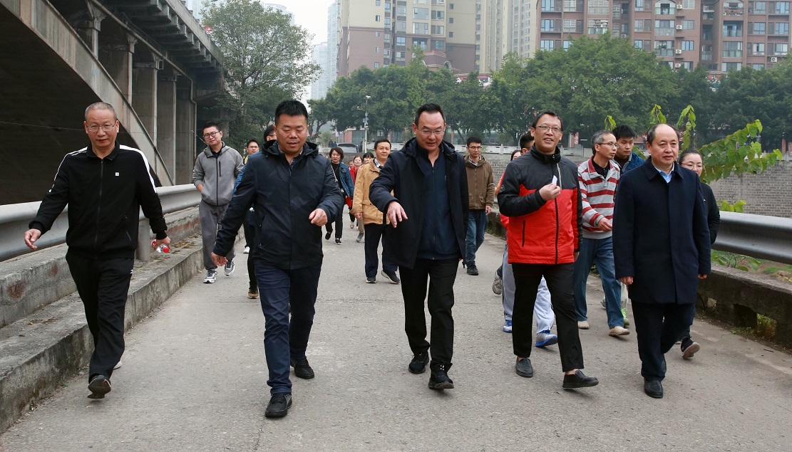 开幕式后,会员职工们迈着矫健的步伐从荣昌校区第七教学楼出发,沿濑溪河畔至风雨廊桥段,往返路程约9.5公里。一路上,尽管凉风习习,会员职工们仍意气风发,充满欢声笑语,坚实的脚步下是大家奋勇争先的决心;濑溪河畔,尽管寒风侵肌,但棠城风景秀丽,会员职工们精神抖擞,健硕的身影掠起的是荣昌校区健康发展的未来。