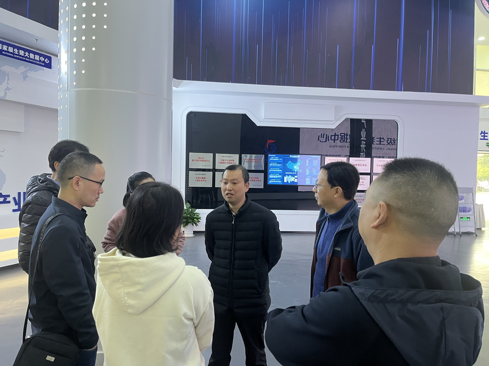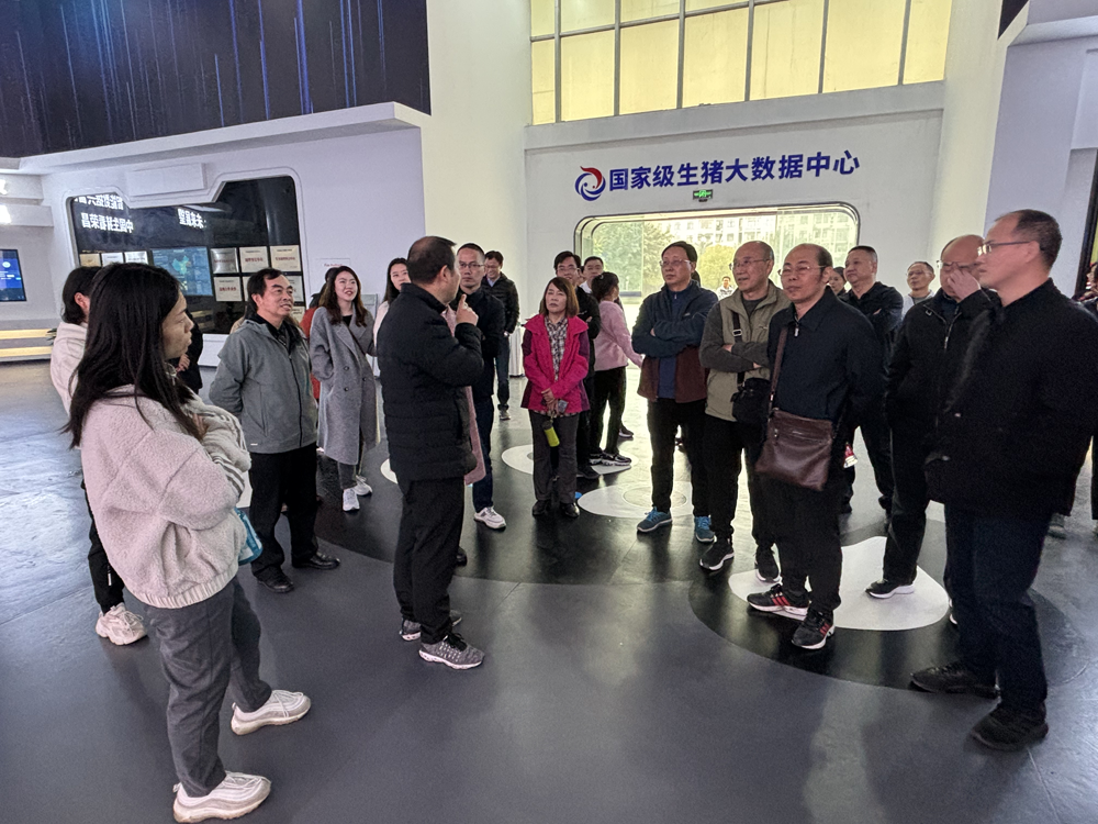首先,大家来到位于荣昌区的国家级生猪大数据中心参观学习。讲解员为大家介绍了生猪产业中的智能养殖技术、数字经济融合、生猪交易、数据监测和畜牧文化等多方面的内容,用语言、文字、图表、绘画、视频和游戏等多种形式生动活泼地展现出了生猪产业链的各个环节以及大数据技术在其中的应用细节。在讲解过程中,老师们有的仔细倾听,结合自身专业特点进行深度思考;有的积极发言,与在场工作人员进行热情交流,高效互动;有的奋笔疾书,有条不紊地做着笔记。现场氛围既保持严肃认真,又不失活泼欢快,让每位听众都享受到一场高质量的“沉浸式”学习。在参观同时,学院领导和有关专业老师还与该中心负责人就大数据应用分析研究、学生实习实践等合作事宜进行了沟通交流。