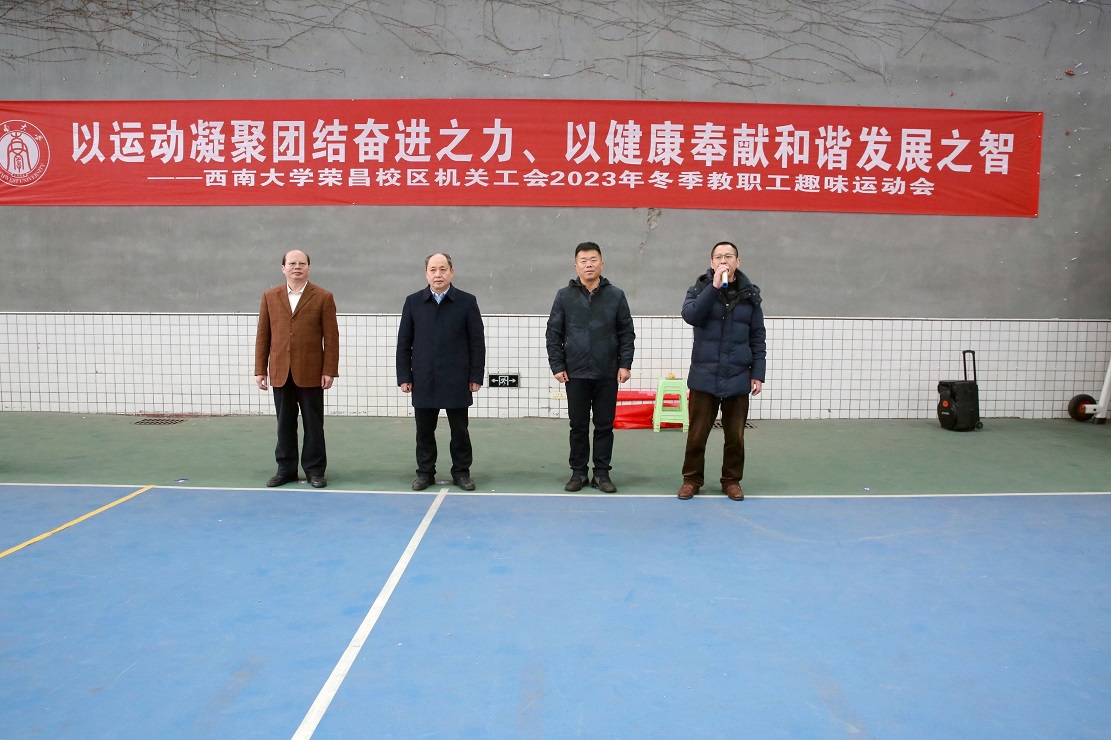 为丰富校园文化生活,增强教职工队伍凝聚力和向心力,12月28日下午,荣昌校区机关工会在风雨球场举行“以运动凝聚团结奋进之力,以健康奉献和谐发展之智”为主题的冬季教职工趣味运动会。荣昌校区党工委书记周国安、管委会主任赵永聚以及校区机关党总支书记周克勇出席运动会开幕式,荣昌校区机关工会主席何明茂主持。
