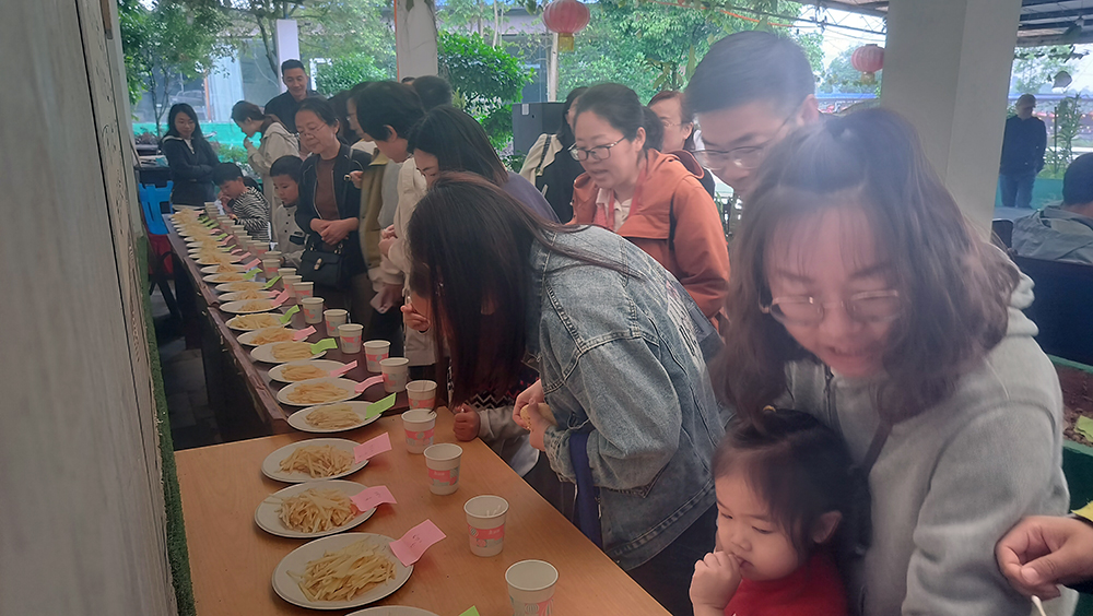 本次活动共设定了两个环节。第一环节为切土豆丝比赛,展示会员及家属的刀功,每位PA视讯集团工会会员或家属可获得一次参赛机会。在比赛现场,菜刀剁在菜板上的“笃笃”声此起彼伏,交汇成了一曲比赛的交响乐。活动中,针对每位参赛选手切出的土豆丝质量进行现场投票评选,最终评选出十位优胜者,获得活动主办方送上的纪念奖品一份。