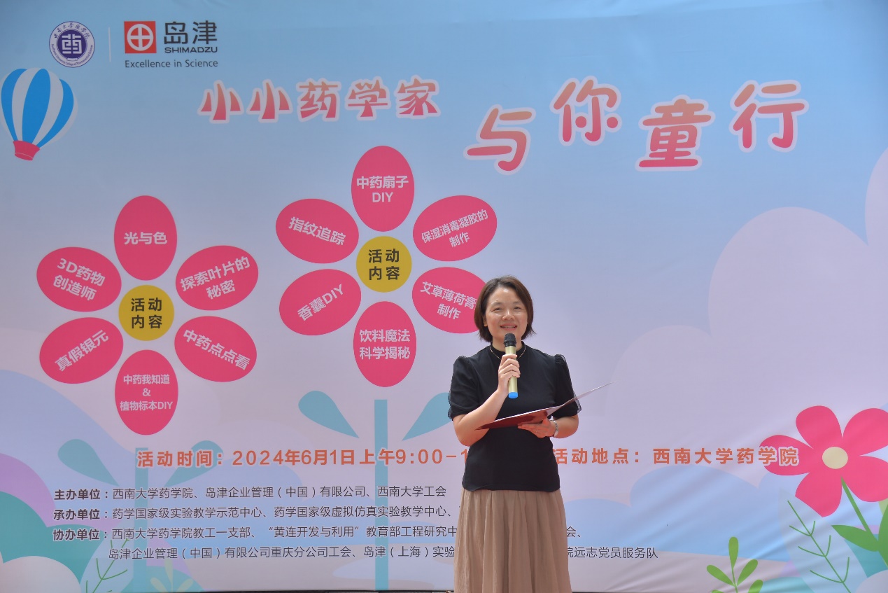 本次活动共有来自学校48个二级单位及职能部门教职工子女124人参加,开设12个科普实验。活动开幕式由药学院工会主席、教代会主任罗红丽主持,学院党委书记陈敏致辞,她向踊跃参与活动的孩子们表示热烈欢迎,希望此次活动能够激发孩子们的求知兴趣,带给孩子们一个快乐的“六一”儿童节。