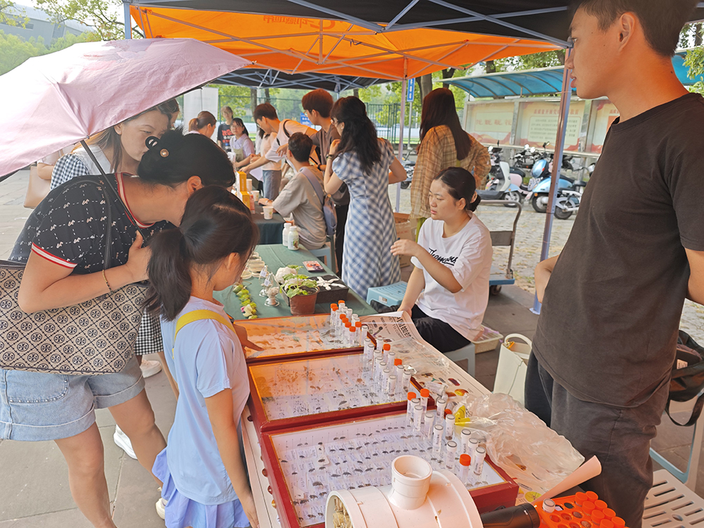 本届丰收节同时设有农业科技产品展览区。农学与生物科技学院的13个科研团队纷纷拿出了自家优秀的科研成果和产品,向全校师生展示。农业展览区包含“五谷丰登”农产品品尝区,免费供师生品尝的蒸南瓜、爆米花、即食豌豆、炸薯片等农作物小零食;“大有可为”高科技农产品展区,进行高油酸菜籽油、新大米品种、薯类品种、玉米品种、烟草卷烟、棉花艺术品等成果展示;“妙语解颐”农业知识科普区,每个团队提供3-5分钟的科普视频,让活动参与者更好的认识作物,了解农业,爱上农业;“智慧农业”展区在活动现场展示了与智慧农业发展相关的智能装备、无人机等,吸引了很多同学的眼球。活动现场一片喜气洋洋的景象,让大家吃有所品,看有所感,学有所获,充分展示了新农科发展成果助力乡村振兴的光明前景。