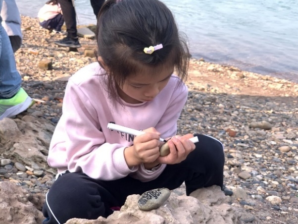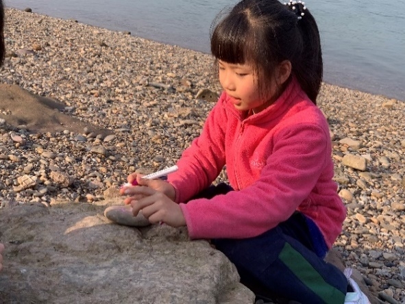 沿着嘉陵江边不断向前,沈老师以岸边的岩层结构为例,为大家科普了岩层的背斜向斜和河流地貌等知识,精彩的地质科普让同行众人都收获颇丰。最终行至一处浅滩,小朋友们纷纷收集起鹅卵石,用画笔在上面绘制漂亮的图案,留作本次活动的纪念。在冬日暖阳的照耀下,本次特色工会活动取得圆满成功。