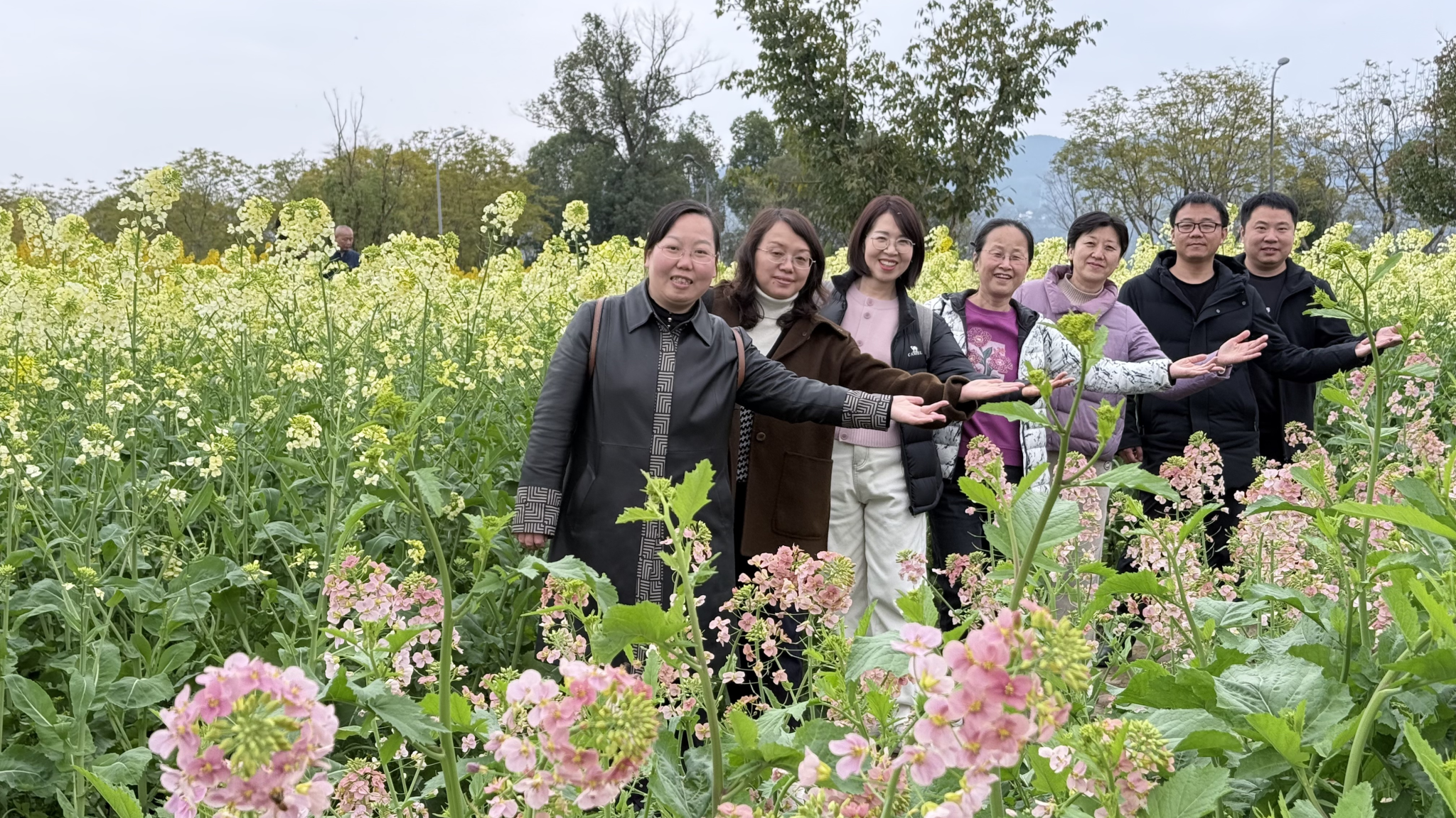 3月7日下午,女神们携家人共赴广阳岛,开启一场与春天的深度对话。金黄的油菜花海翻涌成诗,镜头定格下教育女神们漫步花间的倩影;神兽营地内,孩子们欢笑追逐,喂食萌宠、策马草坪,童真与生机相映成趣。