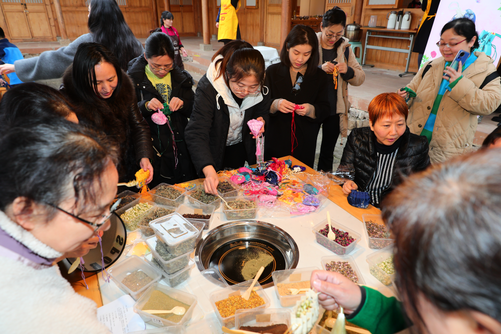 活动的高潮是DIY创意工坊。女神们巧手翻飞,将艾草、丁香等天然香材缝入香囊,一缕药香便裹住了整个春天的清甜;指尖流转间,化作栩栩如生的手工花,或含苞、或盛放,凝固了永不迟到的春意。