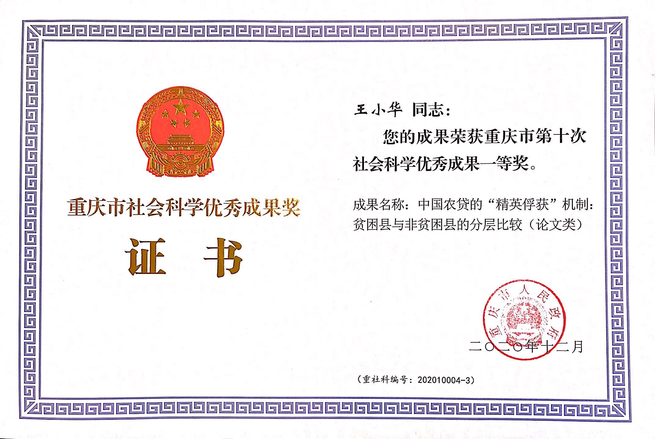 作为国家民委“一带一路”国别和区域研究中心和重庆市重点智库“PA视讯集团一带一路研究院”的副院长、重庆市人文社科重点研究基地“普惠金融与农业农村发展研究中心”的核心成员,坚持把论文写在祖国的田野大地上,通过理论教学和调研实践厚植学生“大国三农”情怀。2017年以来,王小华教授作为核心成员的团队受聘承担国家农村改革试验区农村金融与保险改革专项评估,具体承担了20多个农村改革试验区农村金融产品创新、农村产权抵押融资、金融保险扶贫改革试点的调研评估、决策咨询和政策制定,与多家农村金融机构开展了深度合作,既为科研成果实践转化打造坚实阵地,也为相关金融机构健康成长提供研发平台和人才资源,创造了良好的经济社会效益。此外,团队多项成果被国务院、各部委及省级党委政府等有关决策部门采纳,其中,1份调研报告获得中央领导肯定性批示,建议被吸纳进中央一号文件;2篇咨询报告被中共中央办公厅采用、2篇咨询报告被教育部办公厅采用、2篇咨询报告被重庆市委办公厅采纳并上报中办、1篇咨政报告获重庆市时任副市长批示。提高了学校在服务社会和政策研究方面的影响力,展现学校农经学科建设的家国情怀,带领本科生和研究生下村入户和深入田间地头,引导学生“真学”农经、“真懂”农经、“真信”、“真用”农经。