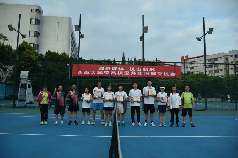 为了发挥教工协会(社团)参与校园文化建设作用,丰富教职工体育文化生活,加强教职工之间相互沟通、交流,促进“健康校园”建设,也为了同学们在紧张的学习之余放松身心、增进友谊,荣昌校区举办了首届师生网球联谊比赛。本次比赛活动由荣昌校区网球协会承办,在校工会的大力支持下,于5月28日下午在荣昌校区网球场成功举行。